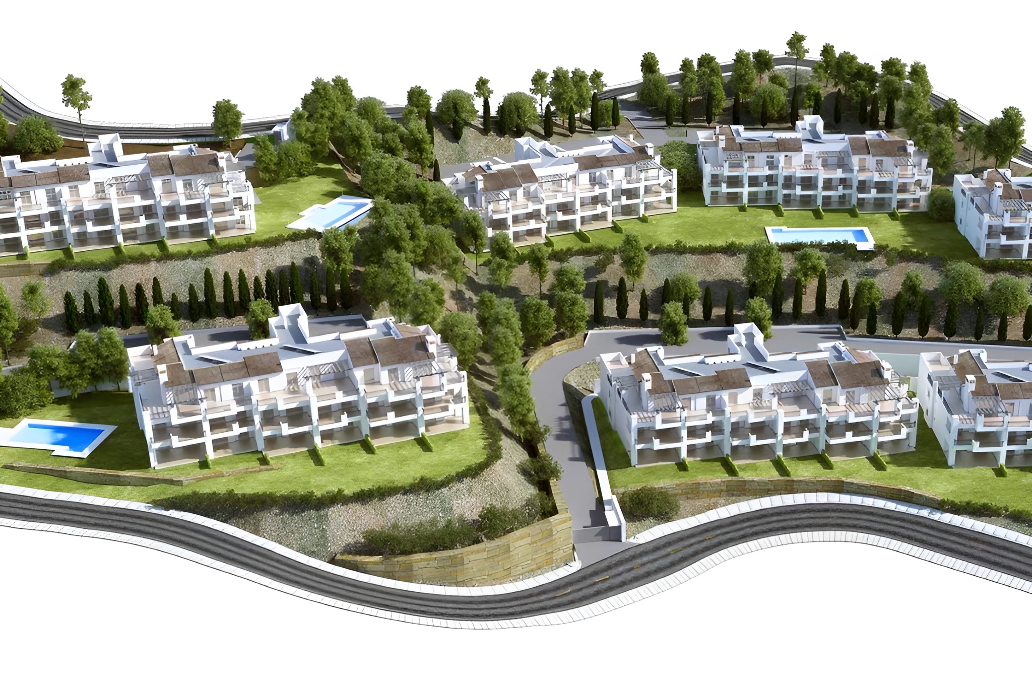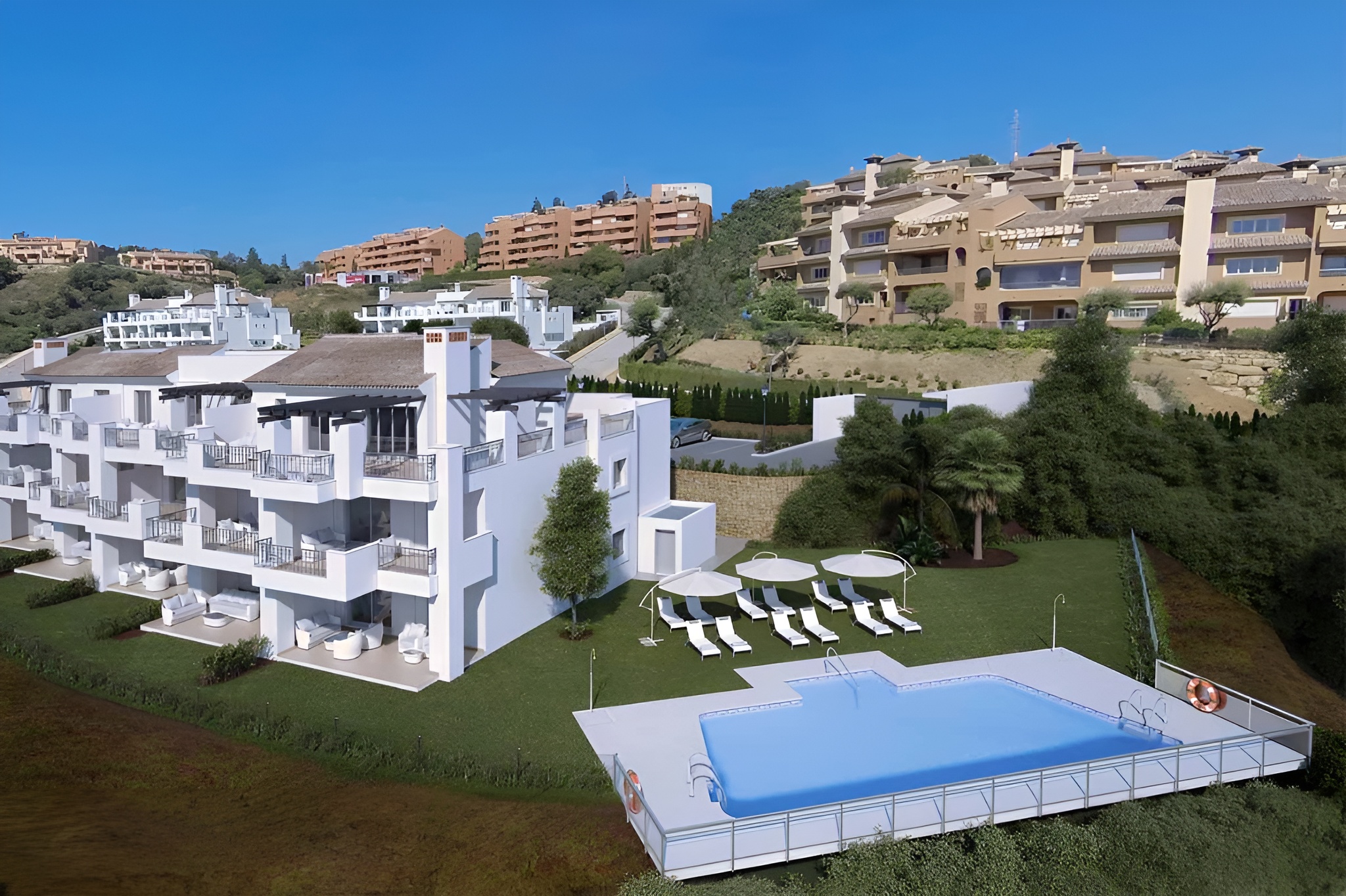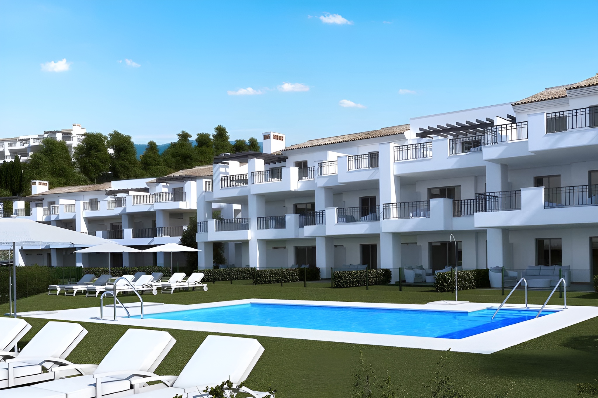Private residential complex with 84 two- and three-bedroom apartments, with gardens and swimming pool. Located in Elviria, Marbella.