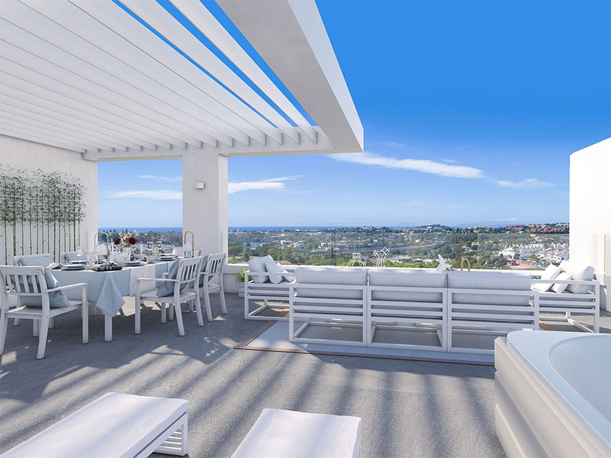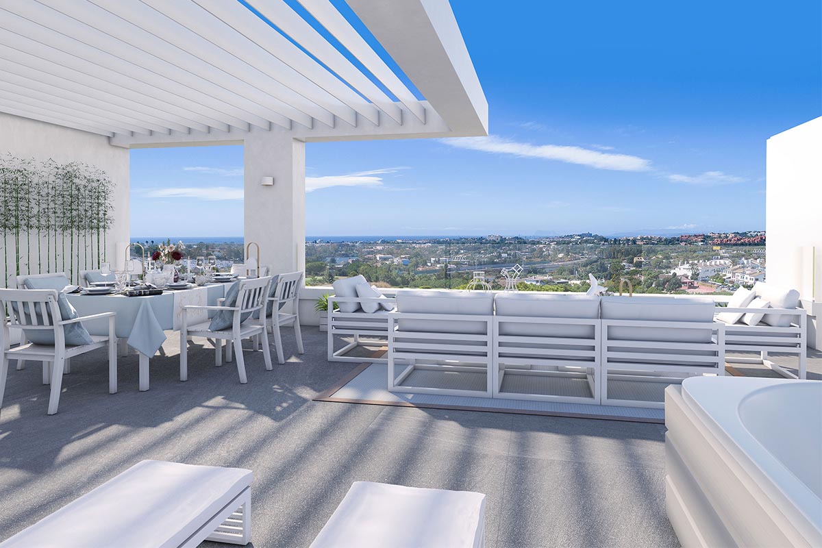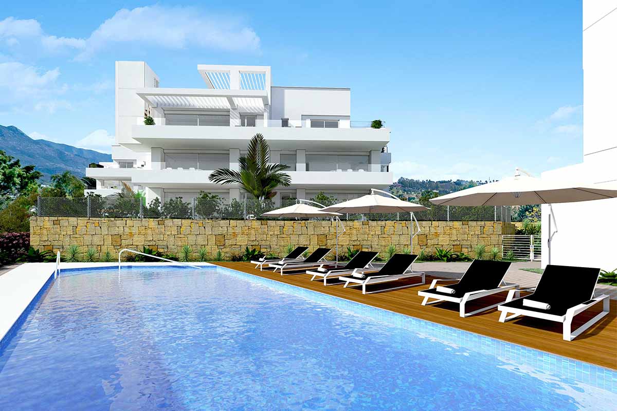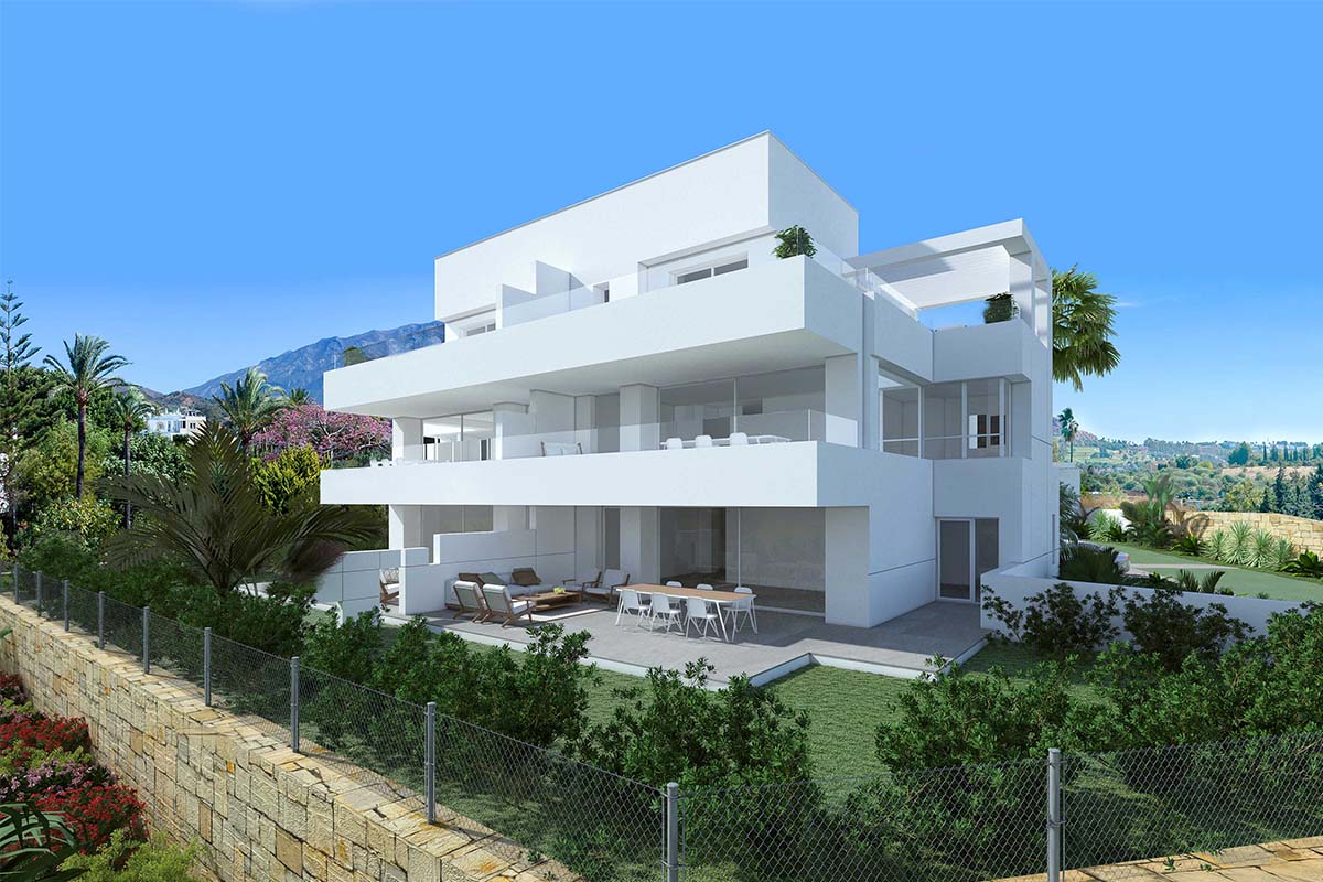 Private residential complex with 14 three-bedroom apartments, with gardens and swimming pool. Located in La Quinta, with spectacular views of the golf course and the Mediterranean coast.