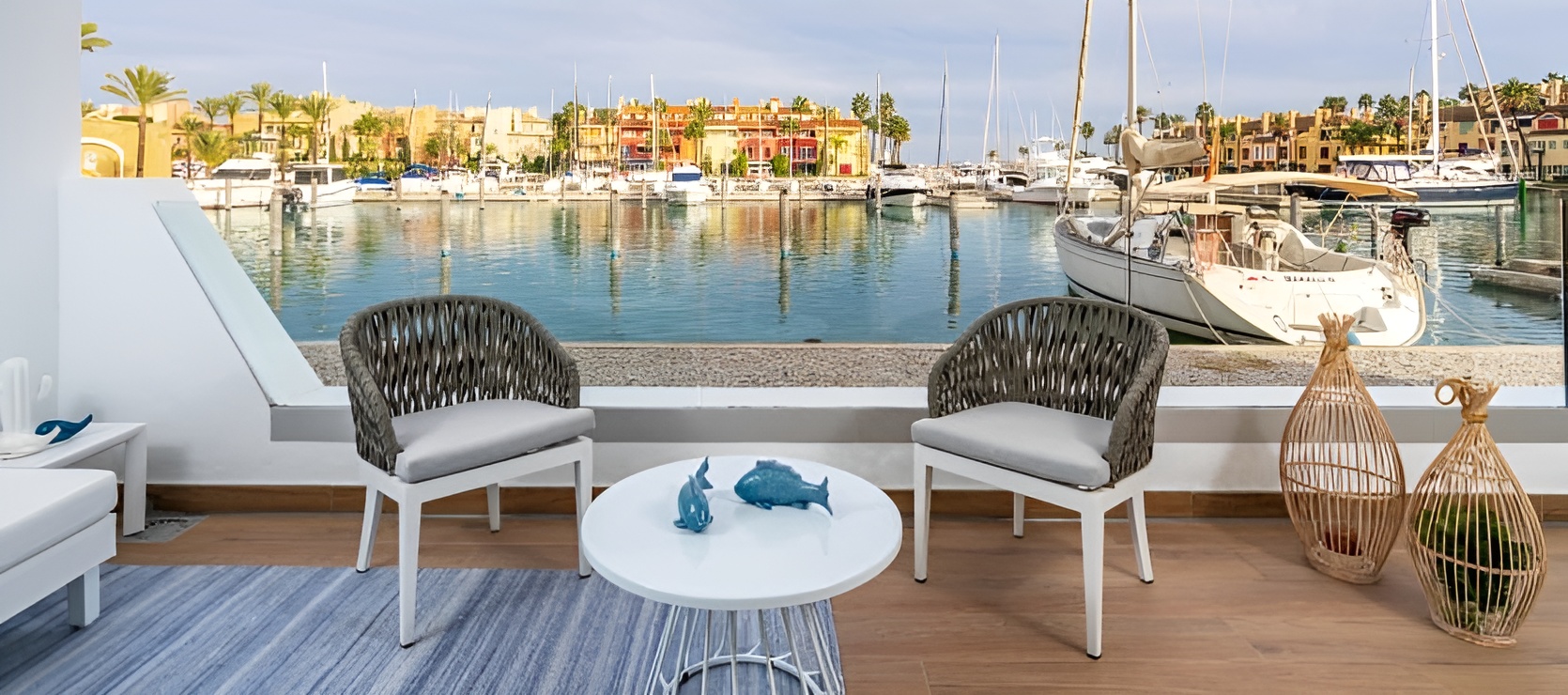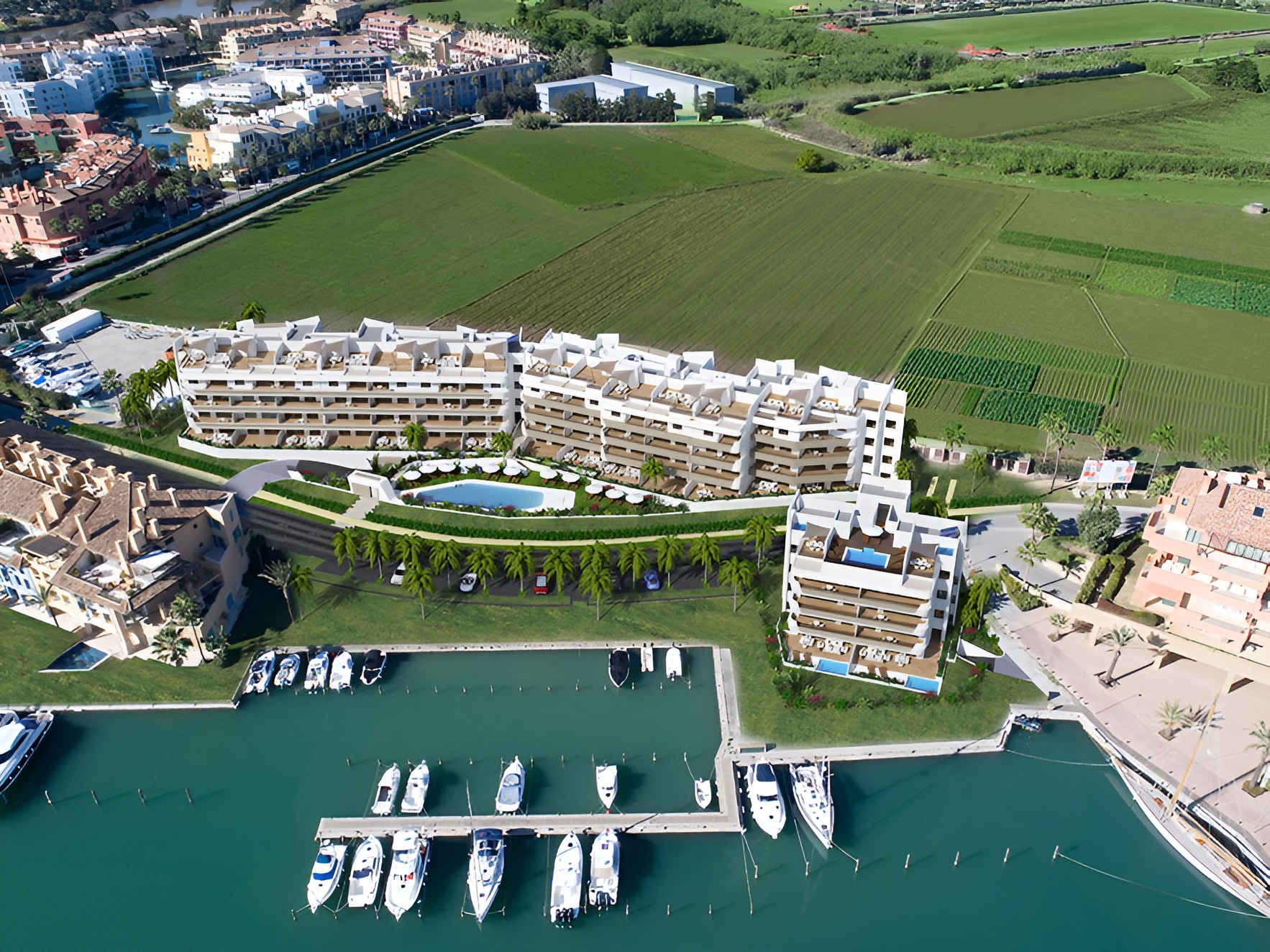 Private residential complex with 64 two- and three-bedroom apartments, with gardens and swimming pool, located in Sotogrande in an unparalleled position facing the harbour.