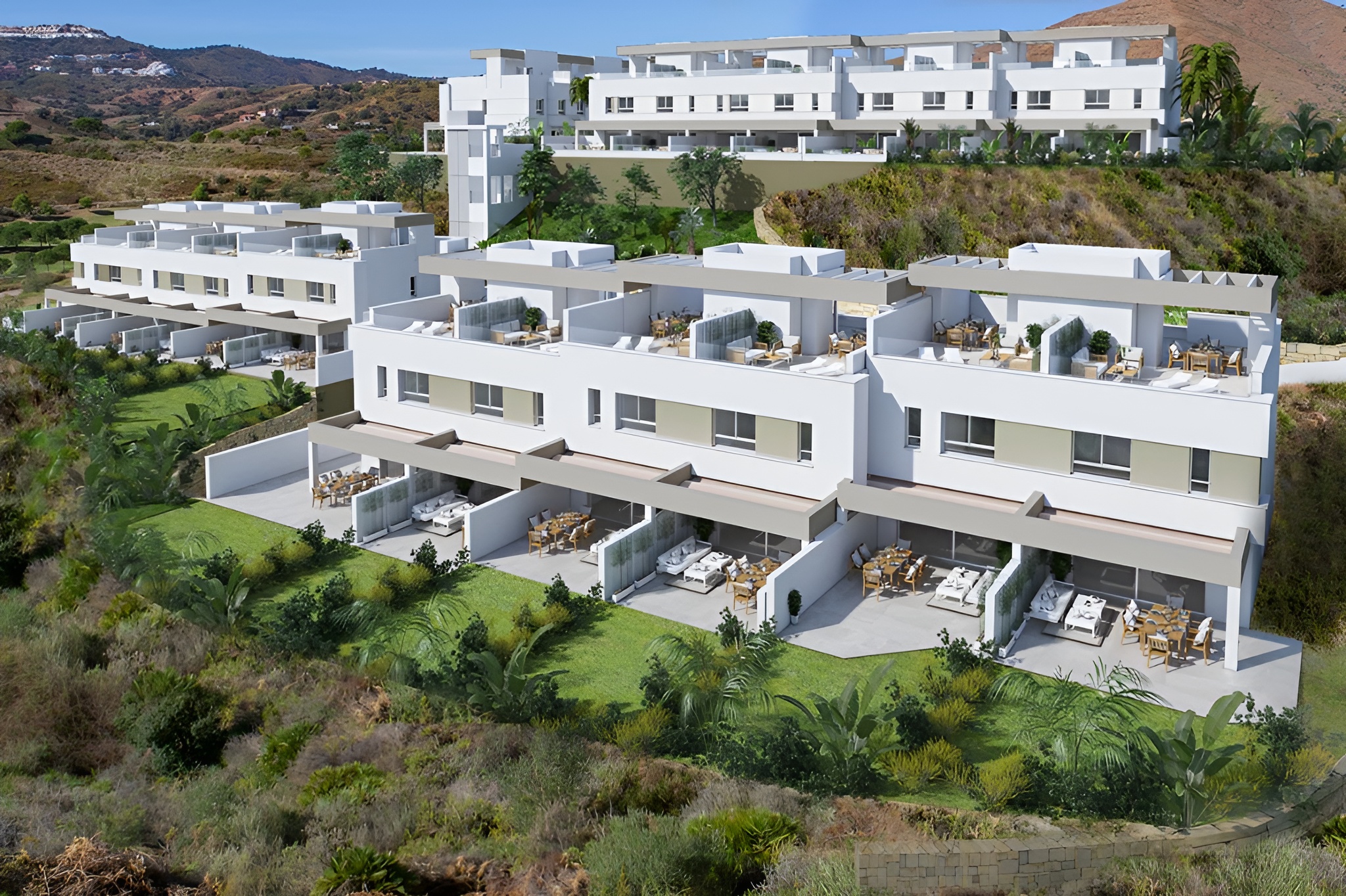 Residencial privado con 40 adosadas de 3 dormitorios, un amplio solárium de más de 50 m2, y jardín. Situado en la Cala Golf Resort.